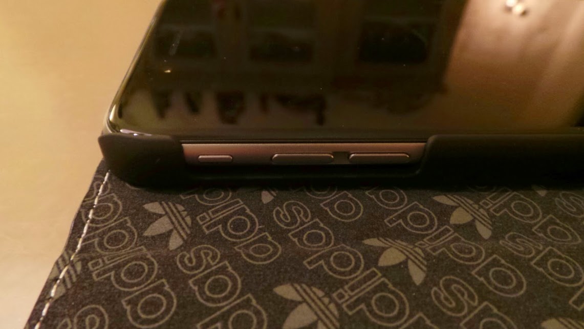 Deze Booklet Case is op en top Adidas. De verpakking laat zien dat we met een Adidas-product te maken hebben, en ook de case zelf ademt Adidas. Aan de voorzijde vinden we de drie kenmerkende strepen met daaronder het Adidas-logo. De achterzijde is ook voorzien van drie strepen, inclusief een toffe en goed verstopte extra feature, waarover later meer. De binnenzijde van de case bestaat uit twee delen. De linkerkant is compleet bedekt met het Adidas-logo patroon, maar heeft verder geen gleuven om pasjes in te stoppen, iets wat veel andere Booklet Cases wel hebben. De rechterzijkant is gemaakt van een wat stroever materiaal, waar de iPhone 6 in geklikt dient te worden. Het bevestigen van de telefoon gaat snel en zonder problemen. Hij zit direct erg stevig vast, je kan met een gerust hart de case gaan schudden. Zoals je mag verwachten is de Booklet Case voorzien van uitsparingen voor alle knoppen, aansluitingen en de camera. De boven- en onderzijde hebben geen randje, waardoor de microfoon, speakers en Lightning-aansluiting alle ruimte krijgen. Wanneer de case dichtgeklapt is, kun je de telefoon ook zonder problemen opladen, wel zo handig. De rechterzijkant heeft een uitsparing voor de aan- en uitknop, de linkerzijkant biedt ruimte voor de volumeknoppen en schakelaar. De opstaande randjes zijn zwart en zijn bij de uitsparingen rond afgewerkt, geen scherpe puntjes dus. Een minpunt voor mij is dat ik de knoppen aan de linkerzijkant niet zo goed kan bedienen als zonder het gebruik van het hoesje. Door de (brede) case dien ik twee handen te gebruiken om bijvoorbeeld de volumeknoppen in te drukken, iets wat mij best irriteert.