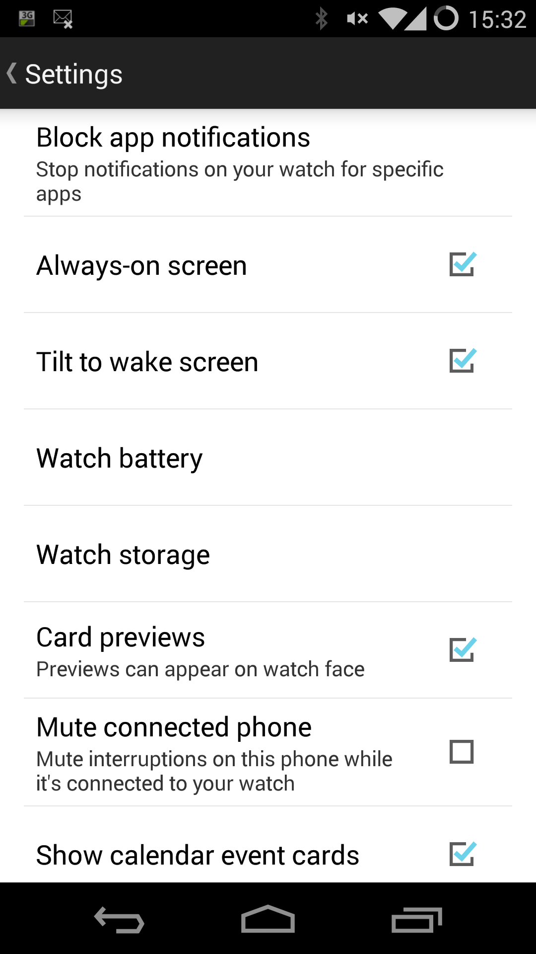 Het horloge beschikt over een Qualcomm Snapdragon 400 processor, welke oorspronkelijk bedoeld is voor goedkopere smartphones. De chipset is te vinden in onder meer de Motorola Moto G. In de G Watch R wordt de processor bijgestaan door 512MB werkgeheugen, wat er samen voor zorgt dat het horloge bijzonder soepel draait. De hardware is krachtig genoeg om het eenvoudige Android Wear-besturingssysteem met voldoende snelheid aan te sturen en zaken als haperingen of vastlopers heb ik dan ook niet meegemaakt. Overigens is er ook 4GB aan opslagcapaciteit aanwezig, waar het systeem ongeveer 1GB van inneemt. De resterende capaciteit kan gebruikt worden om applicaties op te installeren uit de Play Store.