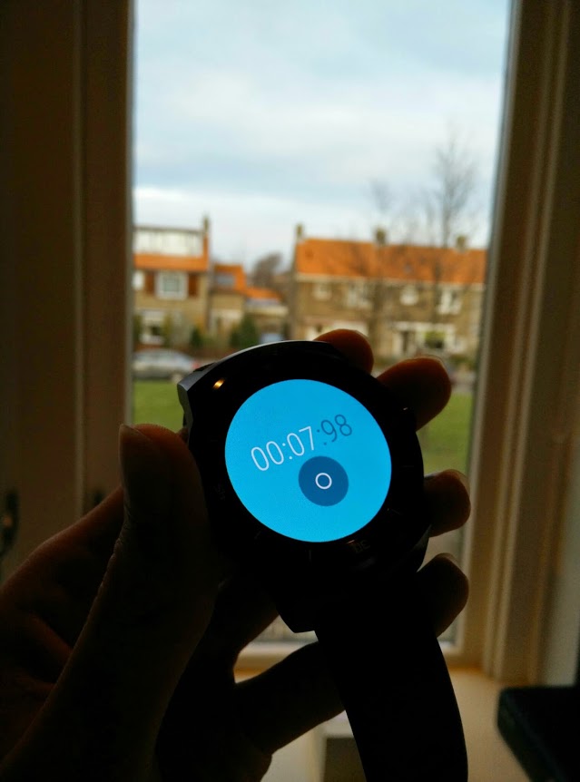 Zoals eerder gezegd, heeft de G Watch R de beschikking over een hartslagmeter. Deze is verwerkt in de onderzijde van het horloge, om een zo accuraat mogelijke meting te geven. Via het ‘Ok Google’ menu kun je met een paar klikken en vegen de hartslagmeter activeren, maar dit is wat omslachtig en verre van ideaal wanneer je écht je hartslag wilt meten, bijvoorbeeld tijdens het sporten. Als niet-sporter zie ik het nut van de hartslagmeter niet echt, maar er zijn ongetwijfeld mensen die blij zijn dat hij aanwezig is op het horloge.