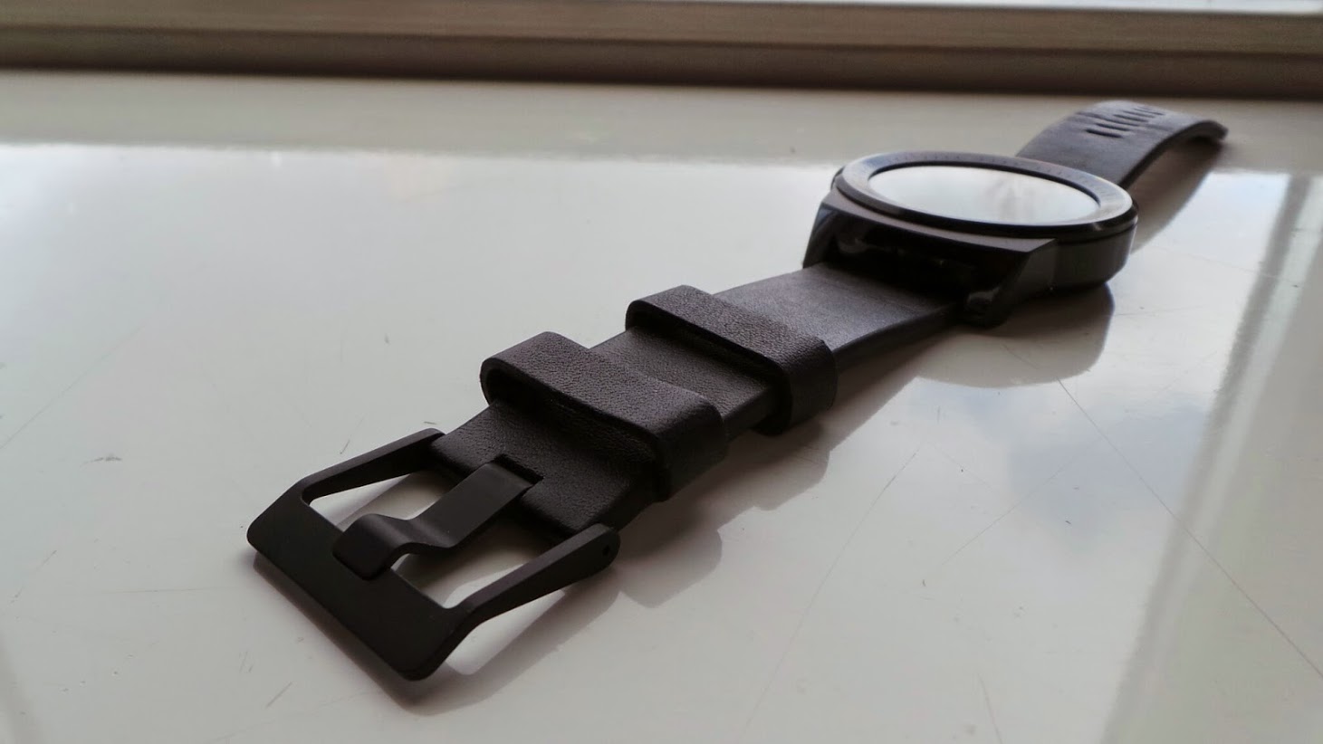 Het meegeleverde 22-millimeter bandje is van nepleer en maakt weinig indruk. Hij ziet er oké uit maar voelt wat goedkoop aan, zeker bij het om- en afdoen van het horloge. Gelukkig kan het bandje eenvoudig verwisseld worden voor elk ander 22-millimeter bandje, om de G Watch R zo naar eigen smaak af te stellen.