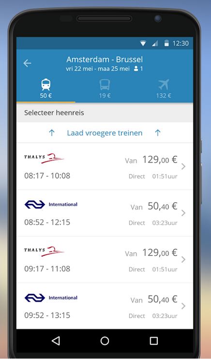 Goeuro biedt na het invullen van je reisgegevens als je bestemming en aantal personen een overzicht van de opties en bijbehorende prijzen. Zo kun je direct de verschillen tussen bus, trein en vliegtuig zien; zowel qua reistijd als prijs. Ook kun je direct je ticket(s) boeken, een fijne feature die de app een stuk completer maakt. Naar mijn idee is Goeuro een combinatie van Google Maps, de NS reisplanner en 9292, met als bijkomend pluspunt dat hij ook gebruikt kan worden in diverse andere Europese landen.