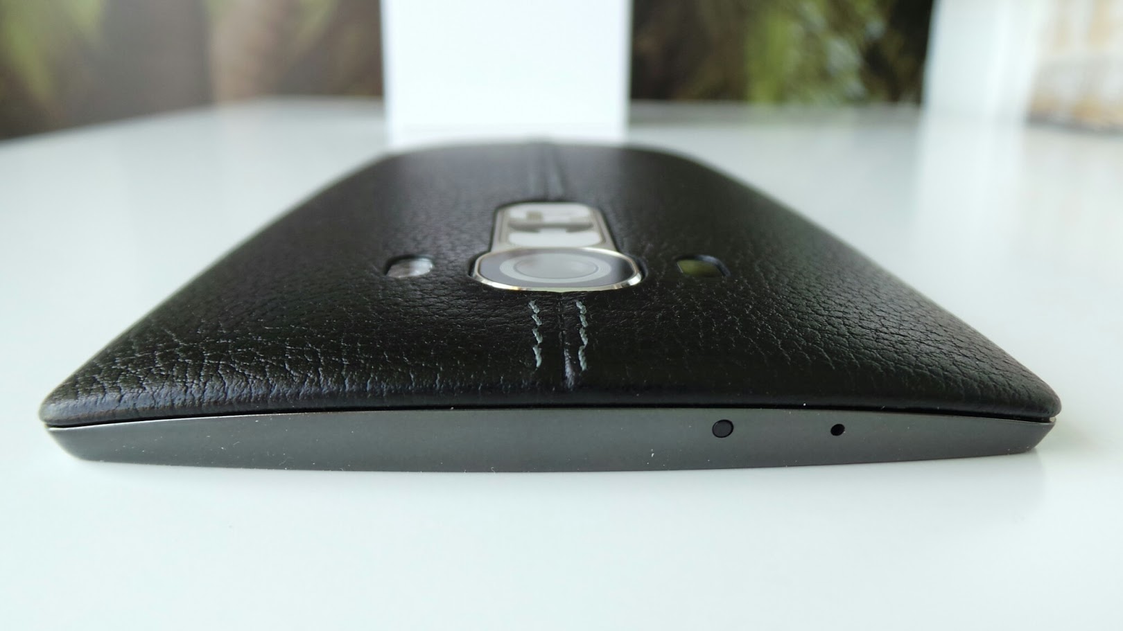 De standaarduitvoering van de G4 wordt geleverd met een verwisselbare, plastic achterkant, die ik kort in handen heb gehad en wat goedkoop aanvoelt. Interessanter is het vijftig euro duurdere model dat beschikt over een (eveneens verwisselbaar) achterkantje van echt leer. De lederen cover is verkrijgbaar in de kleuren bruin en zwart en voelt lekker aan. Het geeft de telefoon een opvallende look en het is echt weer eens wat anders dan glas of metaal, cool. Helaas zijn er ook minpunten: het leer wordt vrij snel vies en heeft na twee weken testen verschillende krassen. Over het stiksel kan ik kort zijn: ik vind hem te aanwezig, maar anderen vinden het juist een tof detail. Over het algemeen ben ik erg te spreken over het uiterlijk van de achterkant: de grote cameralens springt er echt uit, met het kleine ‘G4’ logo als subtiele toevoeging.