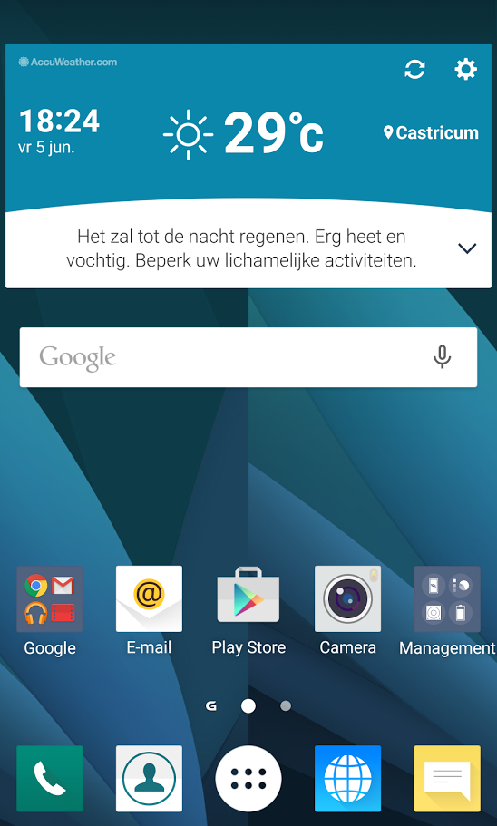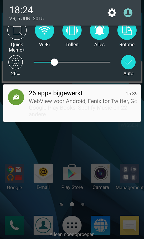 LG stond een paar jaar geleden bekend als een fabrikant die traag was met het updaten van smartphones. Ook de schil die het bedrijf over Android legde kon op weinig waardering rekenen. Dat is nu wel anders: de G4 draait op de nieuwste Android-versie (5.1 Lollipop) en beschikt over LG’s UX 4.0-interface. Deze schil oogt fris en maakt gebruik van felle kleuren en Material Design elementen. En alhoewel UX 4.0 wel iets anders is dan vanille Android, kan ik er prima mee werken. LG heeft de telefoon voorzien van een paar eigen applicaties, waaronder een prima bestandsbeheerder en mooie galerij-app. Er wordt ook een ‘smart bulletin’ meegeleverd, al haalt die het in mijn ogen niet bij Google Now. Verder krijg je twee jaar lang 100GB opslag in Google Drive cadeau, een leuke extra. Enne, over die appicoontjes: die mogen nog wel een make-over krijgen hoor.